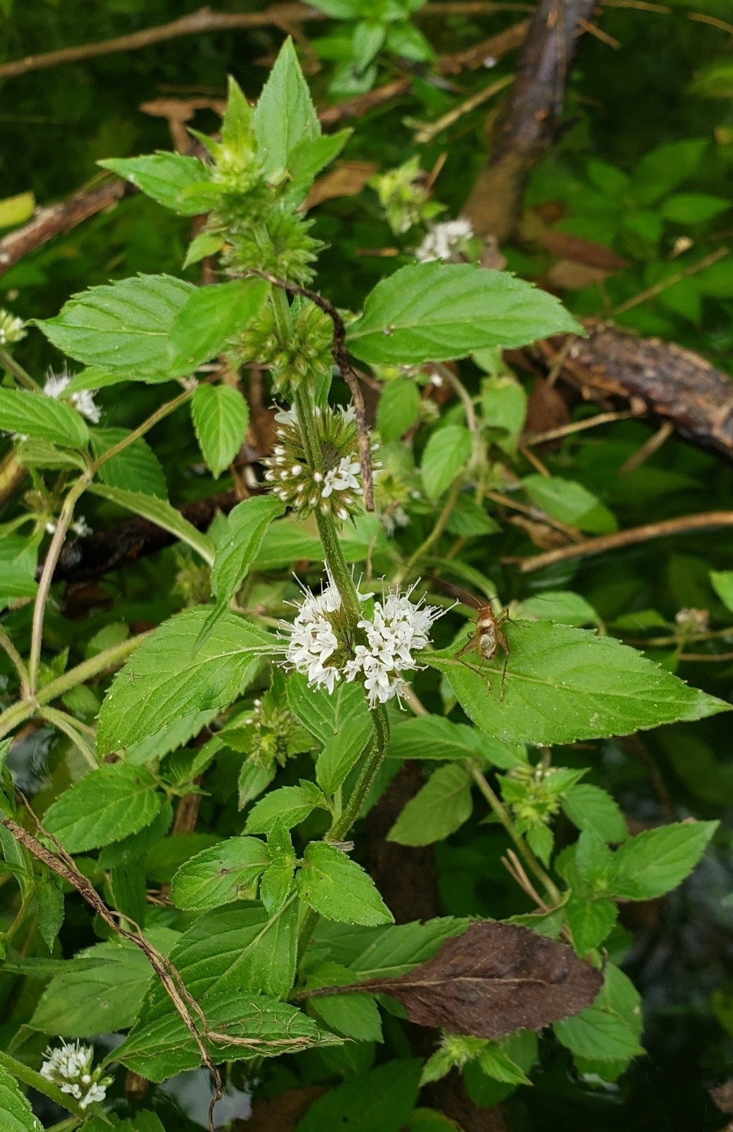 Water mint is pollinated by insects, and also spreads by underground rhizomes forming a ground cover that make it highly effective for erosion control. It was introduced to North America and is native to Europe, Northwest Africa and Southwest Asia. It hybridises easily with other mints shuch as spearmint that produces peppermint.